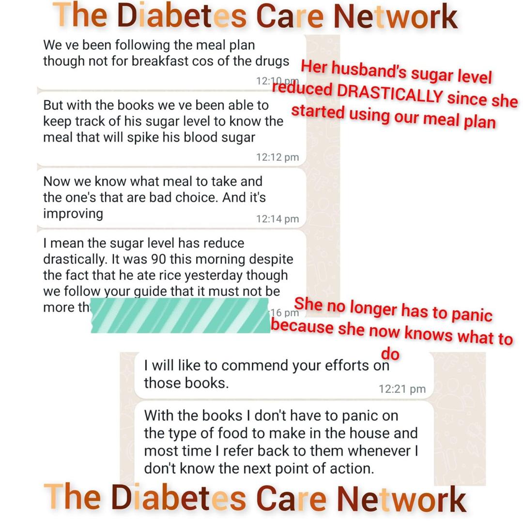 Two years ago, my mother was diagnosed with diabetes, and I found the Diabetes Care Network on Facebook. I reached out to the founder, Margaret, and sincerely, she was God-sent. She helped me go through it. She gave me a meal plan, and provided both psychological, physical, and mental support for me during that period. She taught me ways to help my mom get through the process and obtain remission.