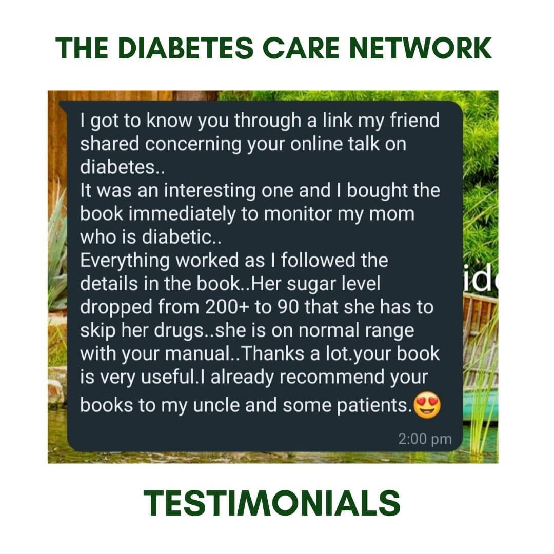 I got to know you through a link my friend shared concerning your online talk on diabetes. It was an interesting one and I bought the book immediately to monitor my mom who is diabetic.
